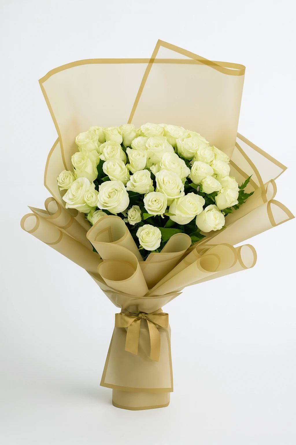 باقة يدوية مليئة بالورد الابيض الطبيعي لمفاجئة الاحبة والاصدقاء.
